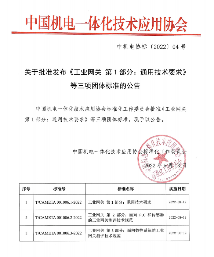2022年5月13日,DG视讯DG智通核心参编的工业网关标准,已正式顺利获得审批!将于2022年8月12日正式实施!
